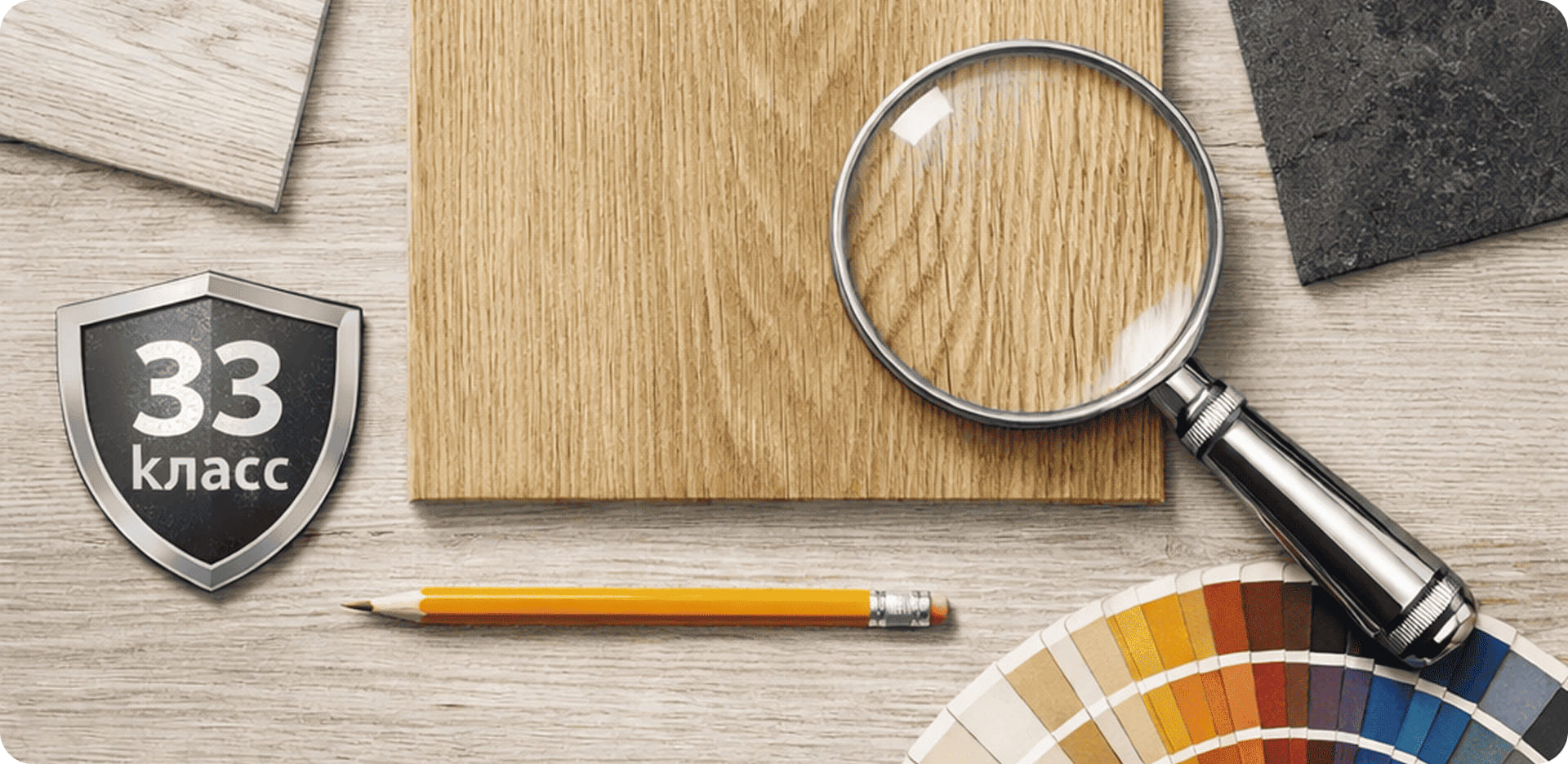 Чем выше класс, тем толще износостойкий защитный слой, который оберегает декоративный рисунок от истирания, царапин и повреждений.
