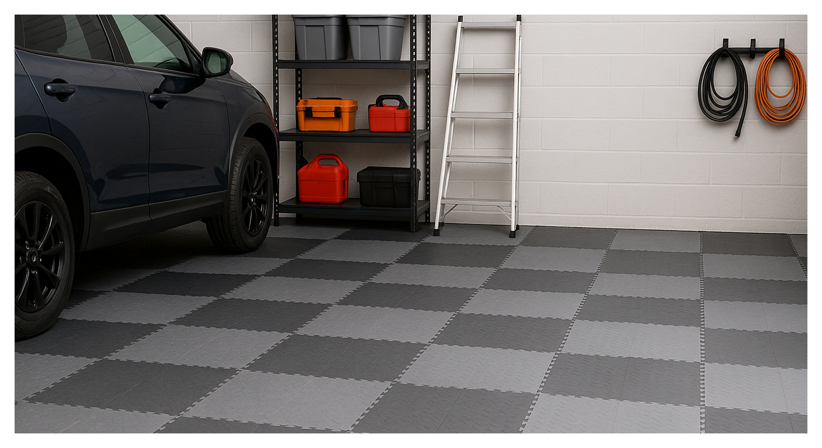 - Стойкость к нагрузкам: Такой пол выдерживает вес тяжелых внедорожников, станков и домкратов. Он не треснет, если вы уроните на него молоток или гантель (в отличие от керамики или наливного пола).
