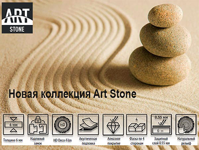 Этот качественный новый продукт состоит из каменно-полимерного ядра, акустической подложки с закрытой ячеистой структурой и защитного покрытия Diamond.