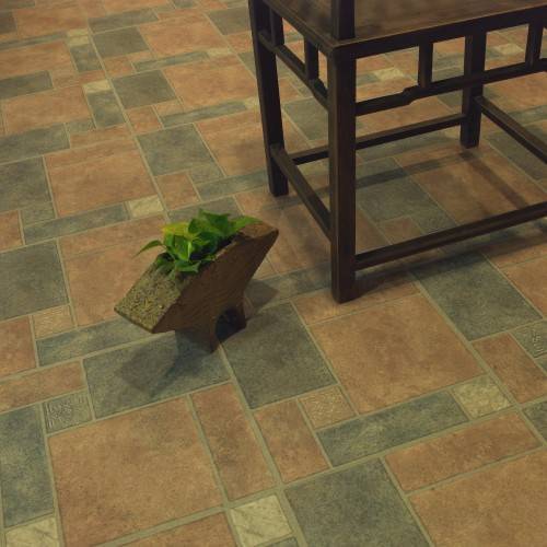 Использованы квадратная плитка «Lg Hausys» Челси и Пуна Бежевая толщиной 3мм, декоративная вставка.