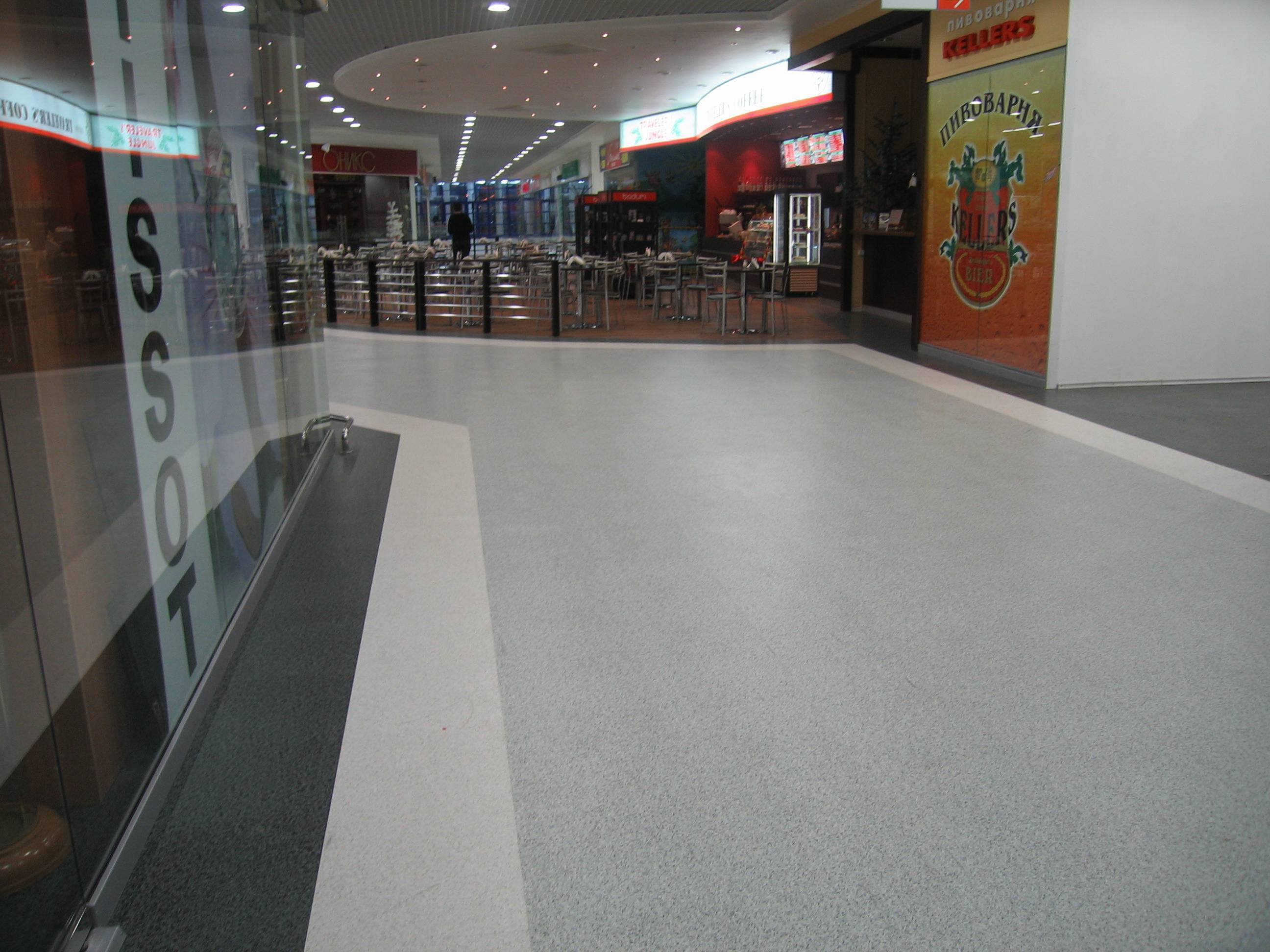 Выполнен огромный объем работ – укладка кварцвиниловой плитки в большом торговом центре. Нам все по плечу!