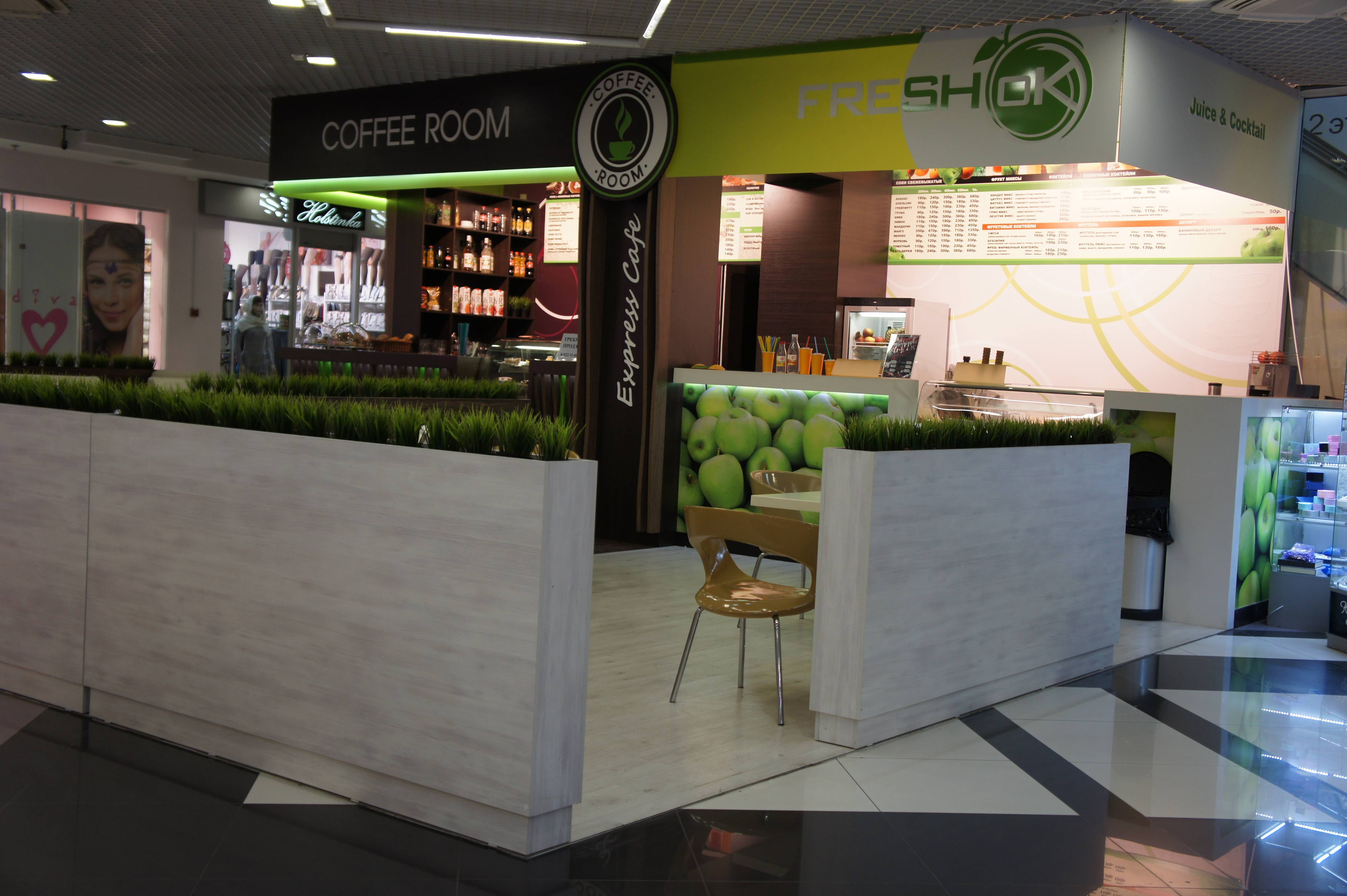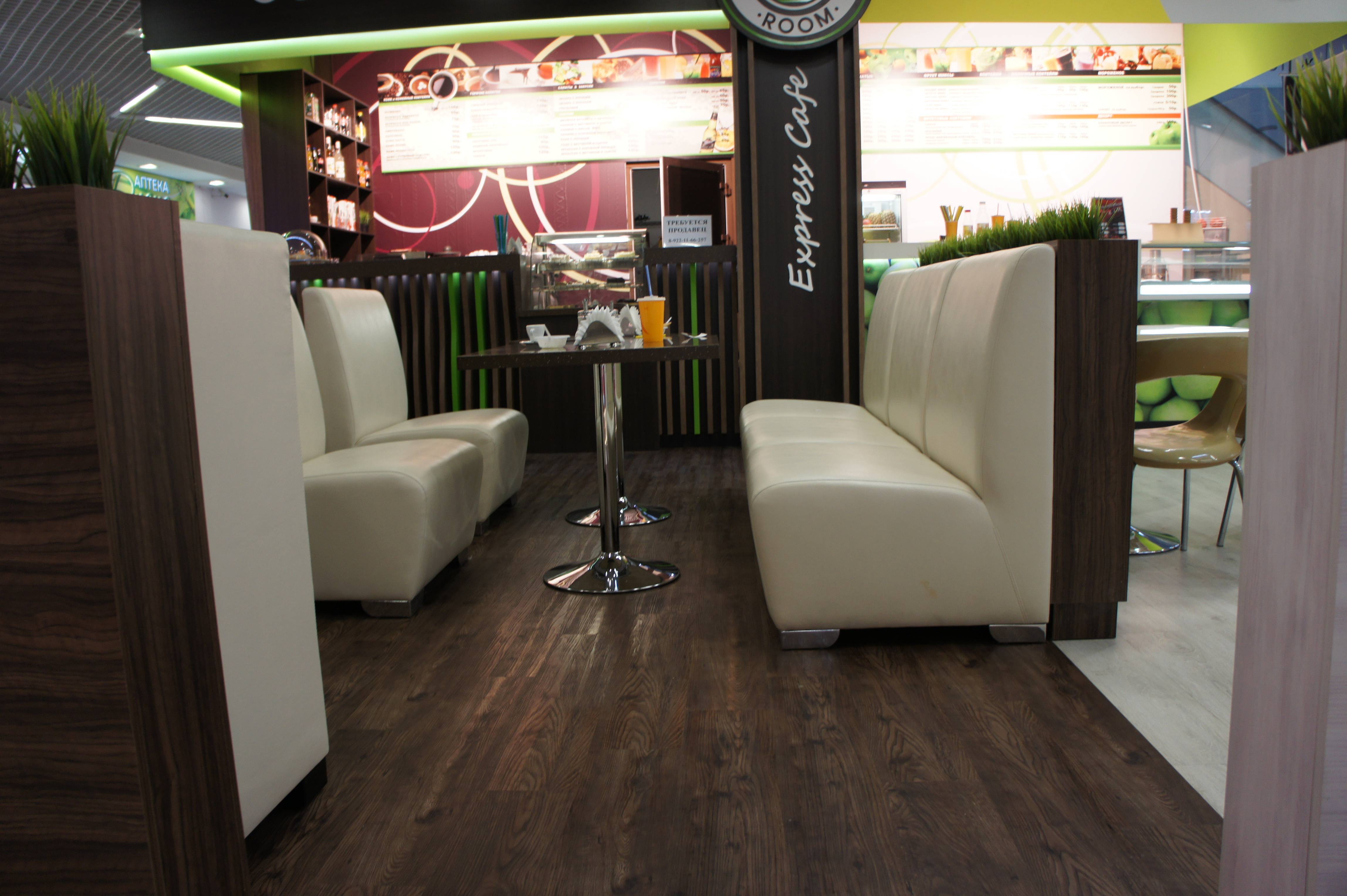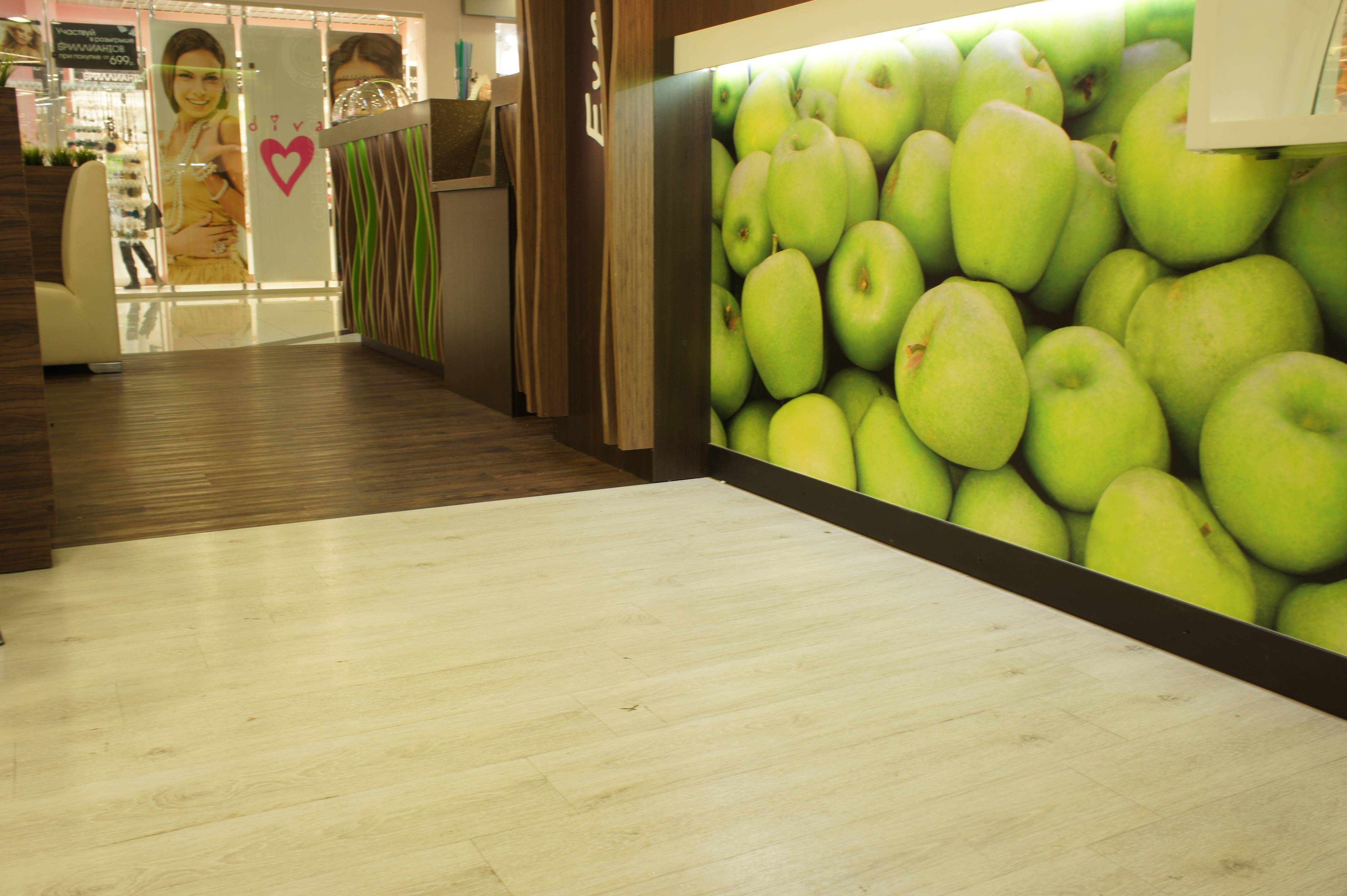 Работа наших мастеров. Укладка кварцвиниловой плитки в Coffee Room Fresh в ТЦ "ФанФан".