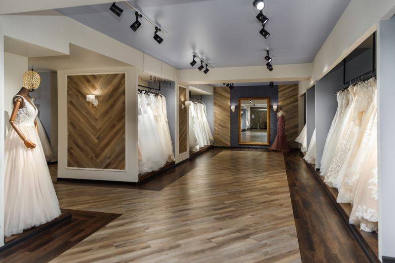 Работа наших мастеров. Дизайн Надежды Булатовой + Укладка кварцвиниловой плитки Art Tile в свадебном салоне «Sovanna».
