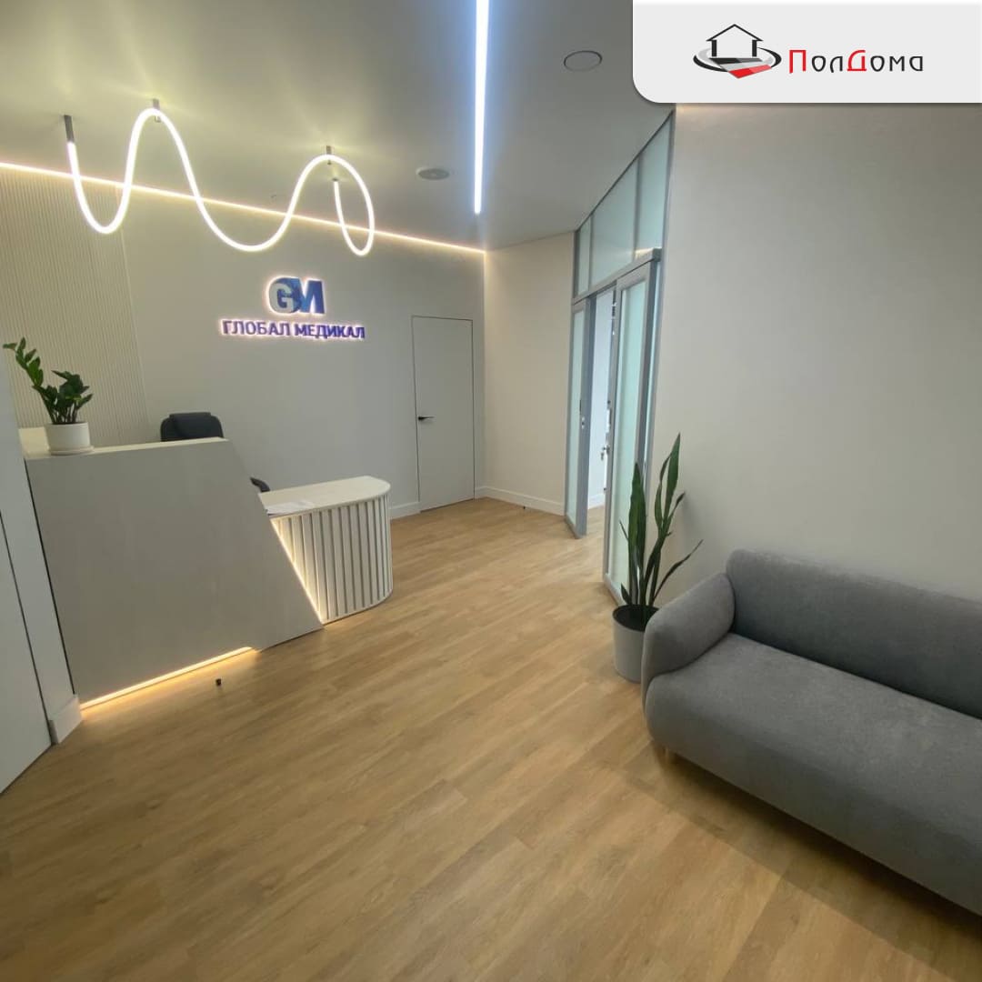 В самом центре Екатеринбурга, в деловом центре «Манхэттен» на улице Мамина-Сибиряка, 101, появился ещё один пример качественного и стильного ремонта. Мы, компания «ПолДома», выполнили здесь укладку напольного покрытия для просторного офиса площадью 140 м². Заказчик искал решение, которое выдержит интенсивную нагрузку, не потеряет внешний вид от ежедневного перемещения сотрудников и клиентов, а главное — будет монтироваться быстро и без «мокрых» процессов. Выбор пал на современную замковую ПВХ-плитку, и мы с удовольствием расскажем, как прошёл этот проект.